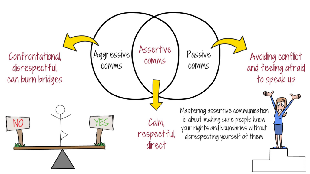 Although assertive communication touches on both passive and aggressive styles, your understanding of the differences is vital as it can decide how you are perceived and subsequently treated by those you’re communicating with. Don’t forget, mastering assertive communication is about making sure people know your rights and boundaries without disrespecting yourself of them.