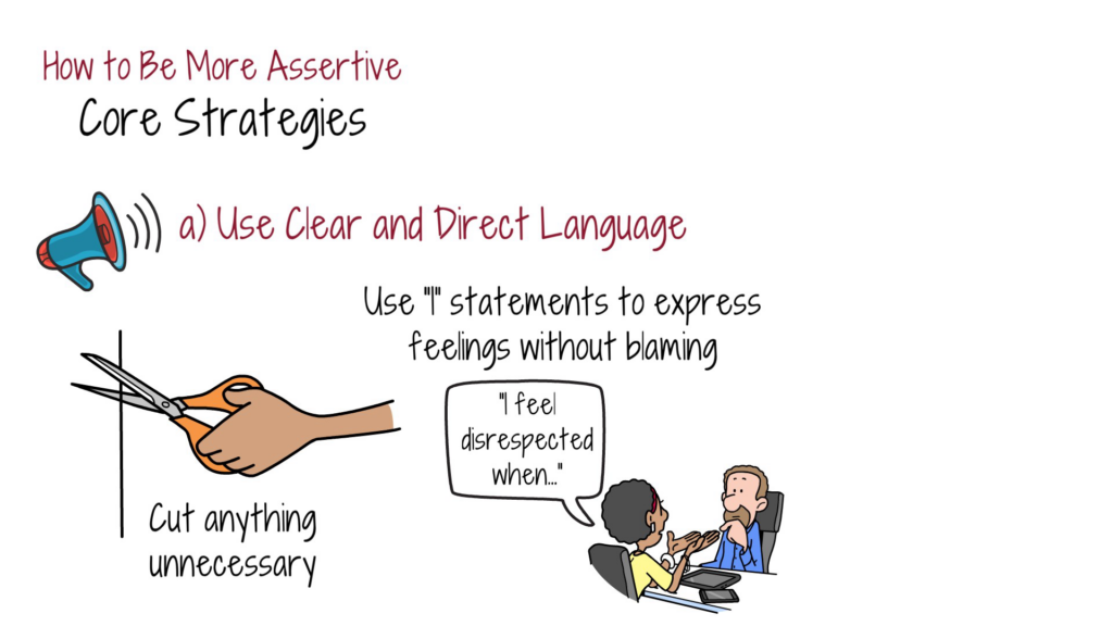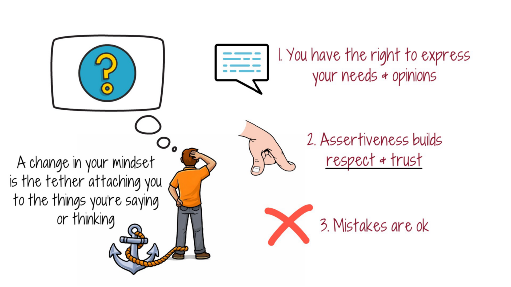 Remember those scenes where a character psyches themselves up before a situation, only for the camera to cut to them immediately folding? It happens, and not just to TV characters. Being assertive can feel like a performance, especially when you’re not used to it. So, to ensure you don’t crumble at a crucial moment, here are some practical exercises you can do: